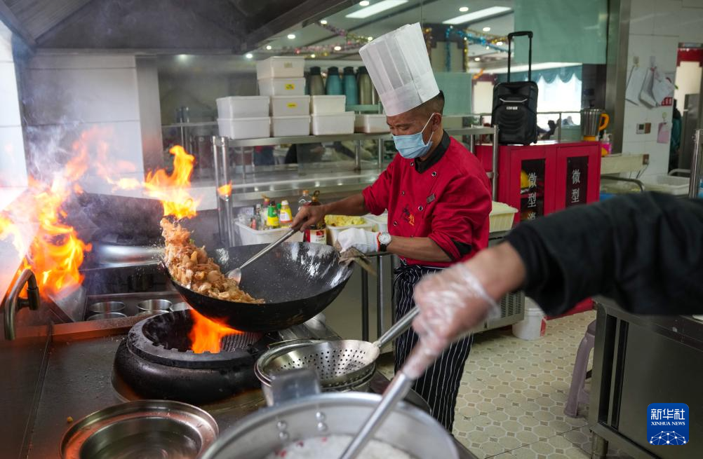 4月25日,那曲市色尼區老年人日間照料中心的廚師在制作午餐。