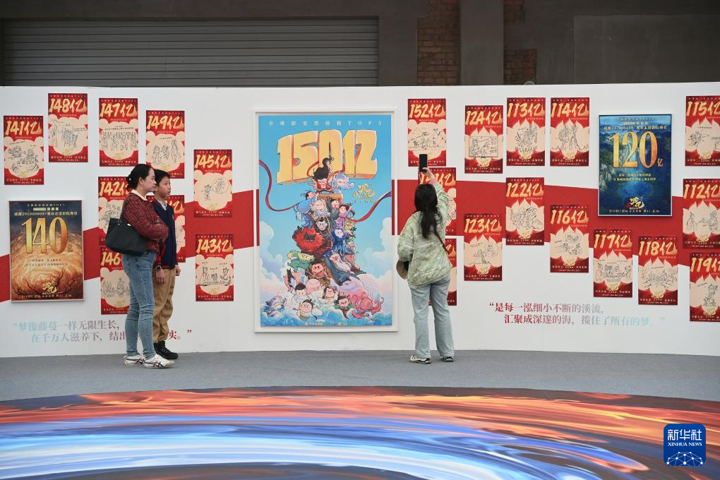 4月19日,觀眾在電影《哪吒之魔童鬧?!菲苾|手繪海報展上參觀。作為第十五屆北京國際電影節的特別展覽,電影《哪吒之魔童鬧?!菲苾|手繪海報展于4月18日至26日在北京朝陽區郎園Station中央車站舉行。