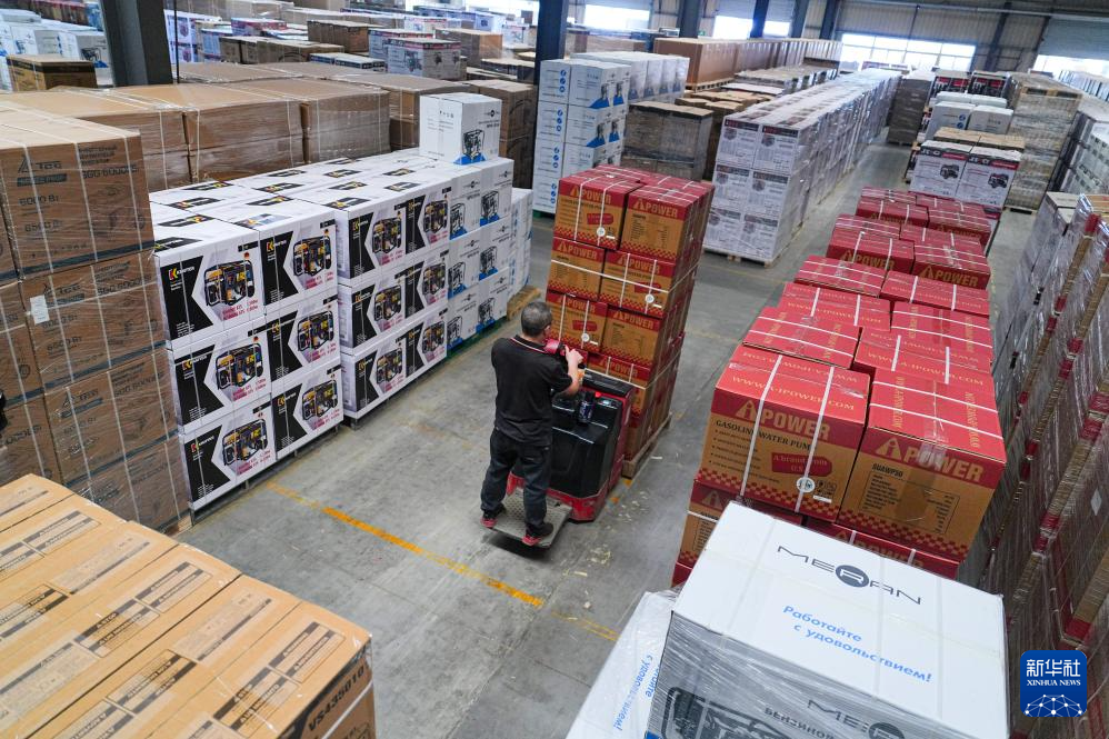 5月9日,工作人員在位于北碚區的神馳機電股份有限公司裝運發電機產品。