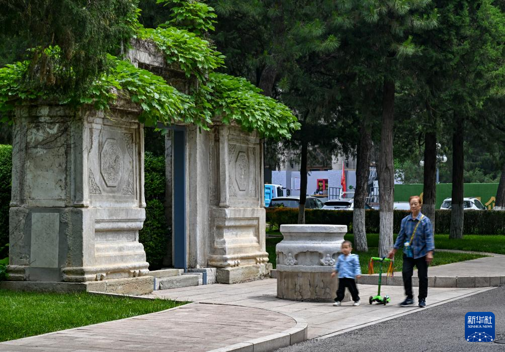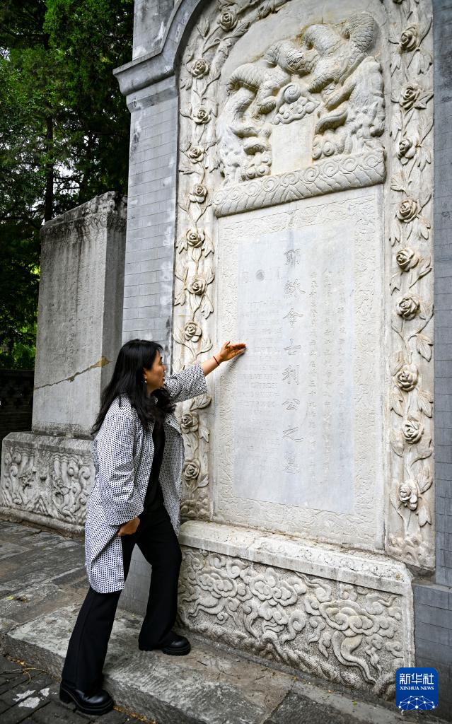 5月12日,工作人員在講解利瑪竇墓碑碑文。