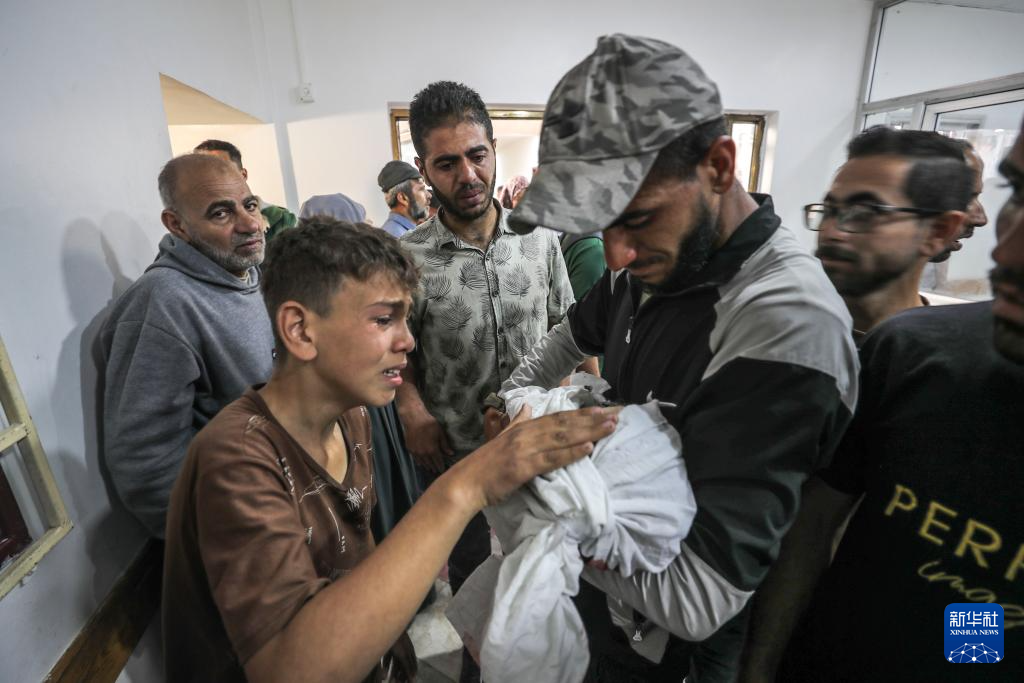 5月14日,在加沙地帶北部杰巴利耶地區,巴勒斯坦人悼念遇難者。
