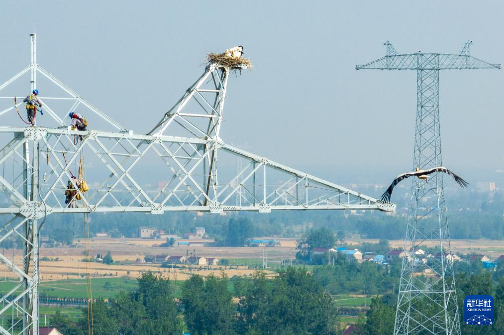 在相關部門指導下,國網安徽電力部門在鳥巢附近安裝高清攝像頭,安排專人跟蹤保護,并根據東方白鸛育雛周期推遲施工進度,實現生態保護和電網發展“雙向奔赴”。