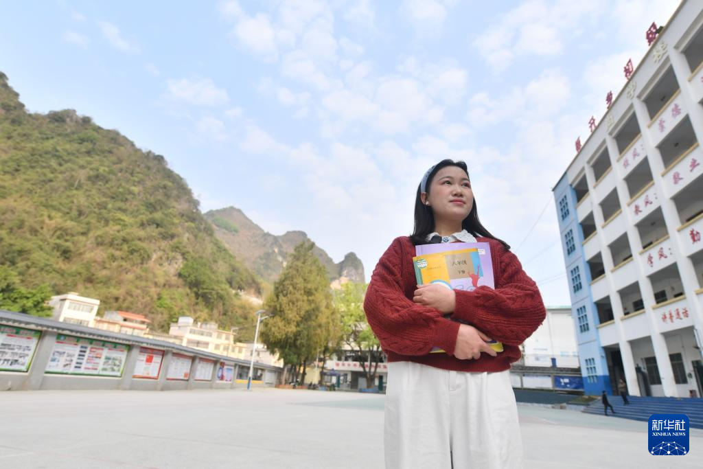 13年前,在廣西河池市大化瑤族自治縣板升鄉弄雷村哈寶屯,11歲女孩蒙秋艷每日護送低年級弟弟妹妹穿越300多米險崖上學的報道引起廣泛關注。老師的關懷激勵她奮發讀書走出大山、反哺家鄉。2024年,已入讀廣西醫科大學翻譯系的蒙秋艷通過教師資格證考試。如今,她即將學成畢業,并回到家鄉母校當老師,期待點亮更多山里孩子的夢想。