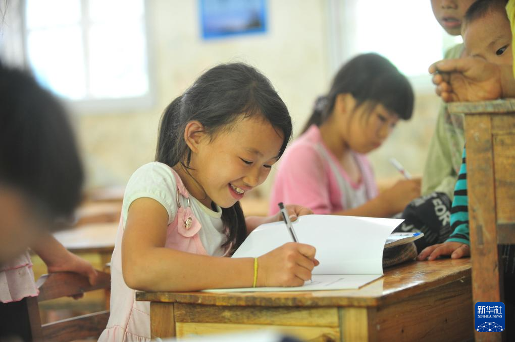11歲的蒙秋艷在廣西大化瑤族自治縣板升鄉弄雷小學教室里學習(2012年9月5日攝)。