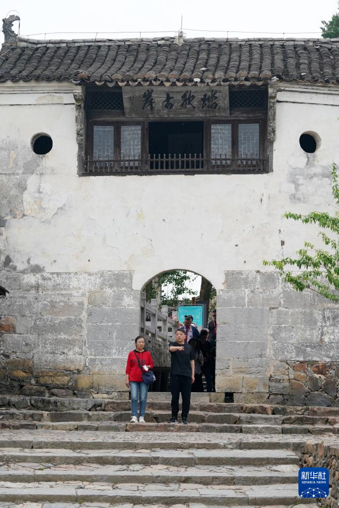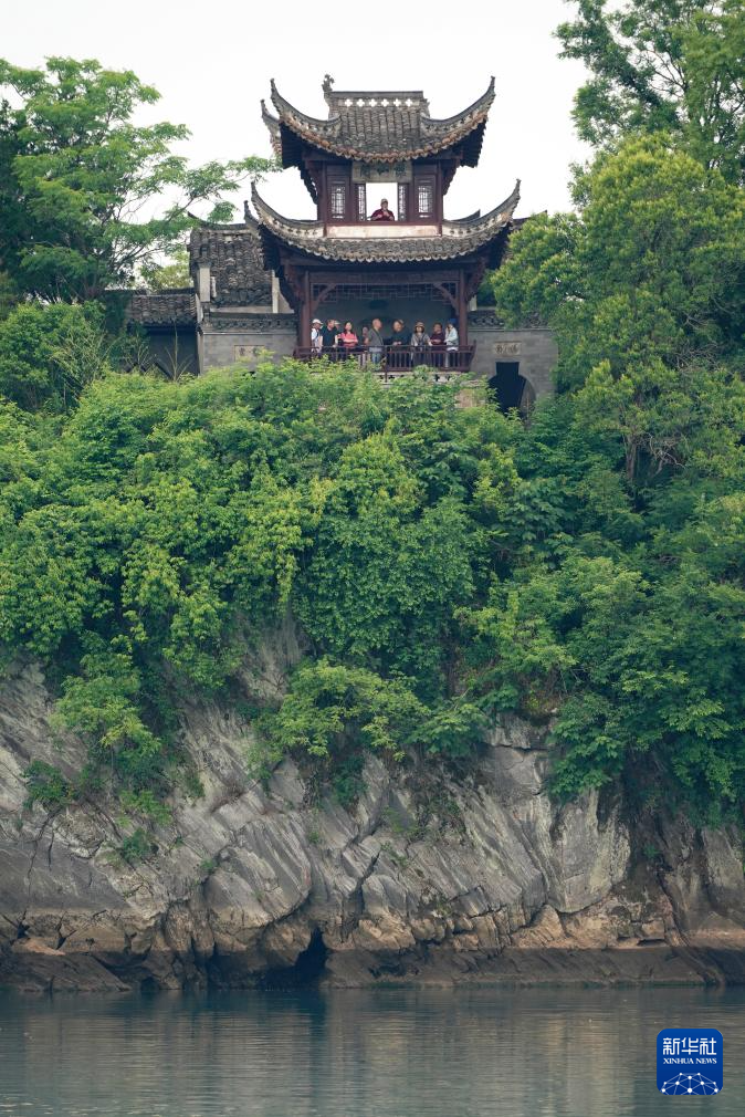 5月15日,在安徽省宣城市涇縣桃花潭景區,游客登臨懷仙閣賞景。