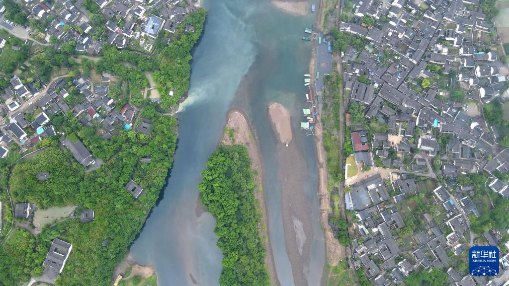 5月16日在安徽省涇縣拍攝的雨中桃花潭景色(無人機照片)。