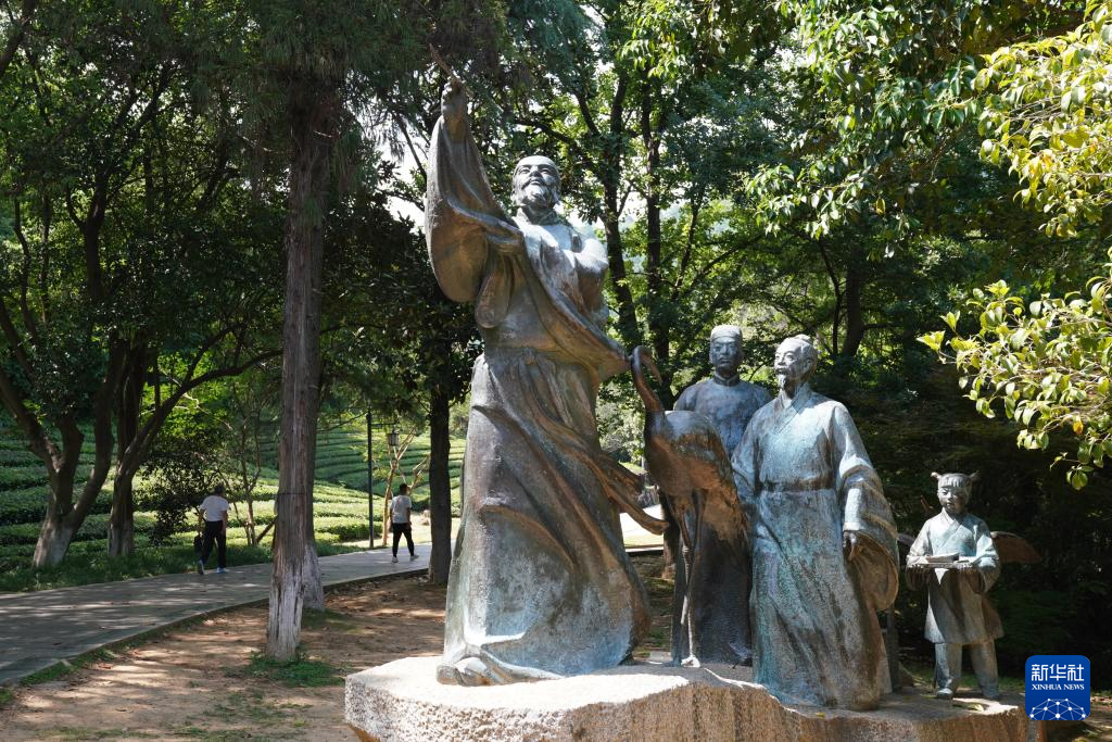 5月14日在安徽省宣城市敬亭山拍攝的李白雕像。