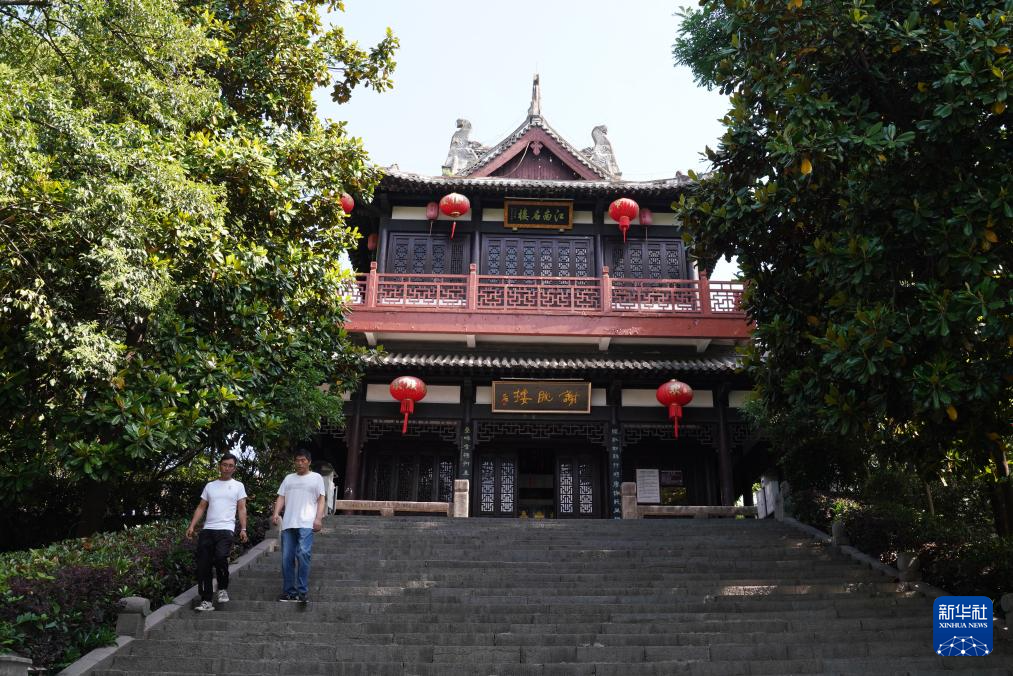 5月14日,游客在安徽省宣城市敬亭山太白獨坐樓游覽。