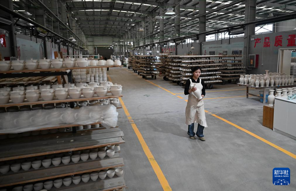 5月29日,寶豐縣一家汝瓷企業的工人在搬運素胎。