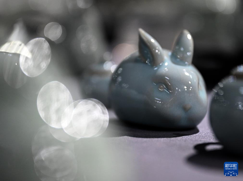 這是寶豐縣一家汝瓷企業生產的瓷兔產品(5月29日攝)。
