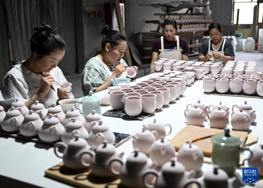 5月29日,寶豐縣一家汝瓷企業的工人在修釉。