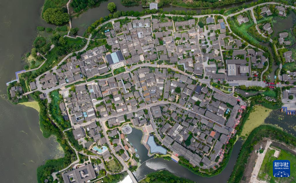 6月7日拍攝的江蘇省鹽城市建湖縣淮劇小鎮(無人機照片)。
