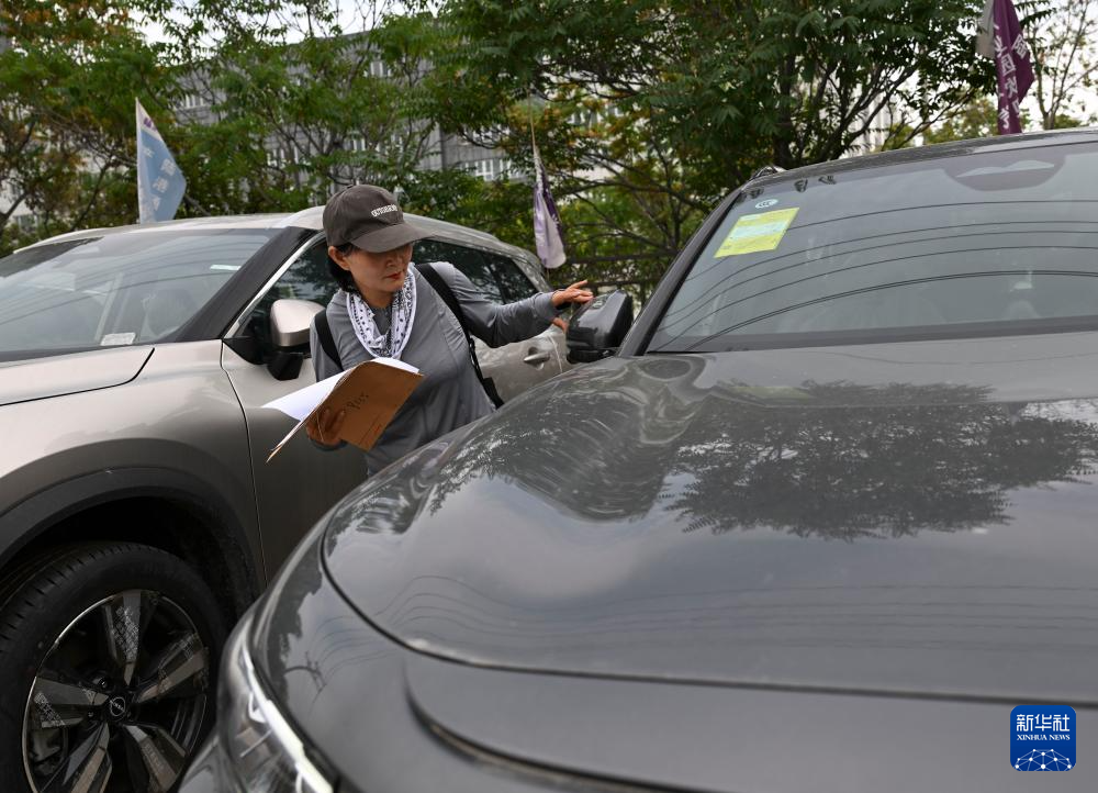 在新疆霍爾果斯一家汽車貿易公司,“擺渡人”高云在取車后檢查車況(6月10日攝)。