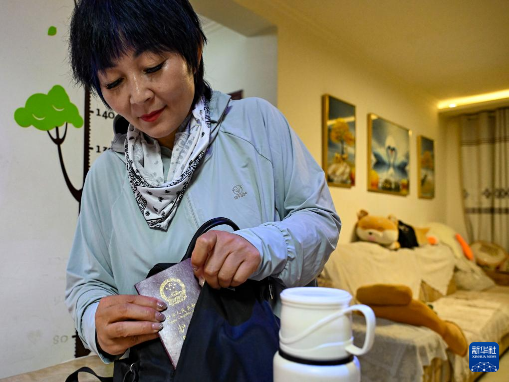 高云在執行運車任務前,在新疆霍爾果斯家中把護照裝入背包中(6月9日攝)。