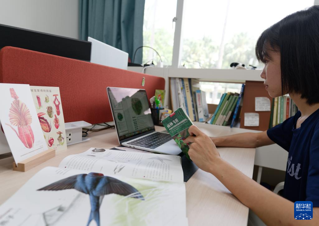 6月15日,工作人員在中國科學院西雙版納熱帶植物園環境教育中心設計鳥類科普課程。