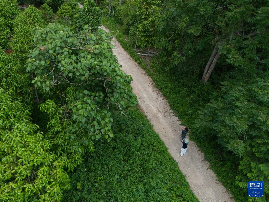 6月15日,工作人員在中國科學院西雙版納熱帶植物園開展鳥類調查監測(無人機照片)。