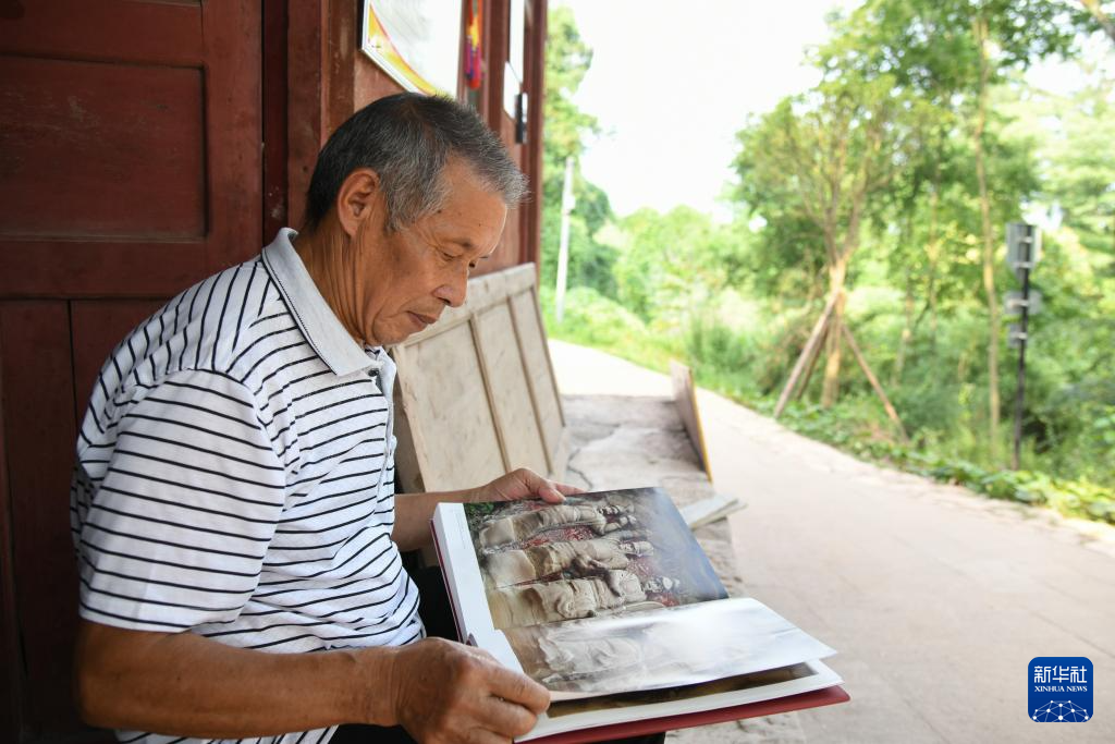 曾祥余翻看安岳石窟影像冊(6月14日攝)。