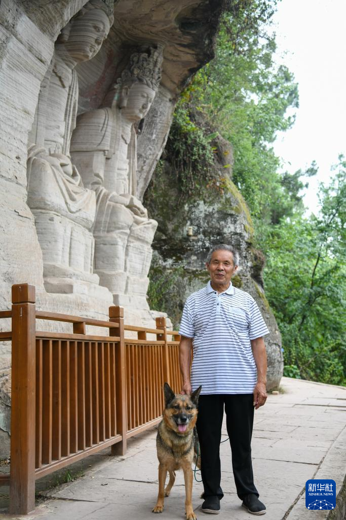 在四川資陽安岳縣石羊鎮境內的虎頭山巔,一位老人經常牽著一條狼狗,在茗山寺外的環形步道轉上幾圈,仔細檢查每一尊摩崖造像是否完好。他,名叫曾祥余,今年76歲。