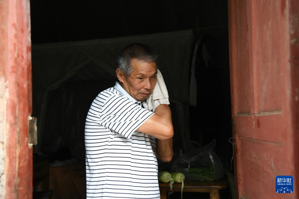 曾祥余在巡查后擦拭汗水(6月14日攝)。