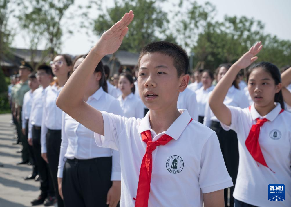 7月7日,北京市第十中學的少先隊員在儀式上。