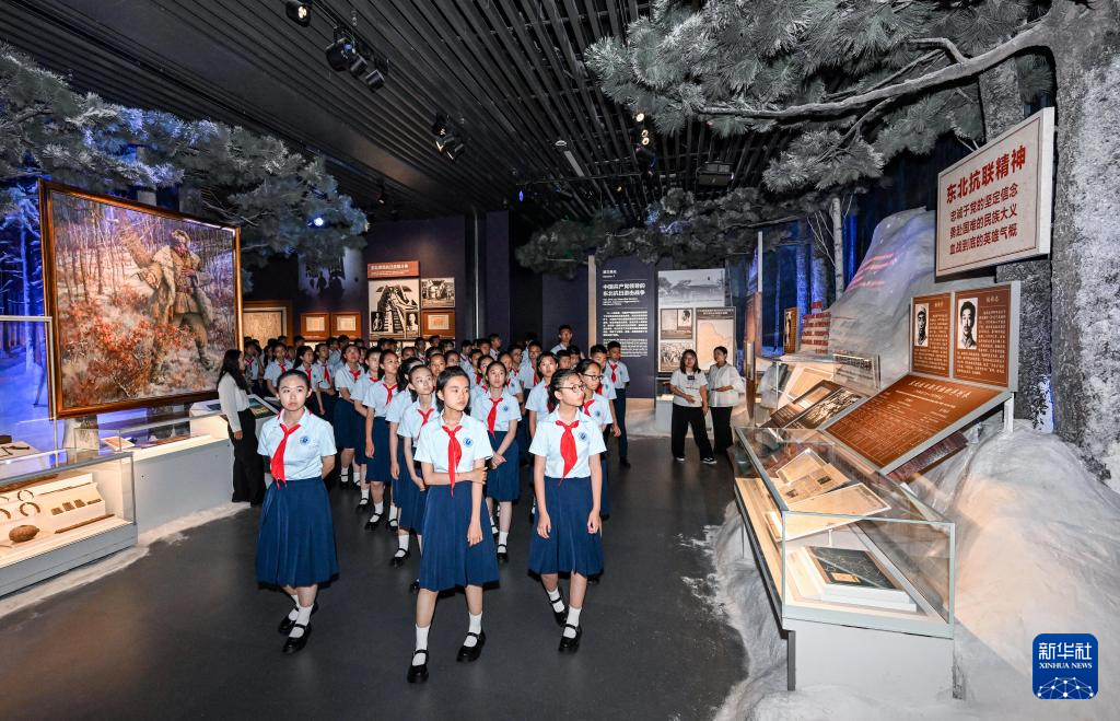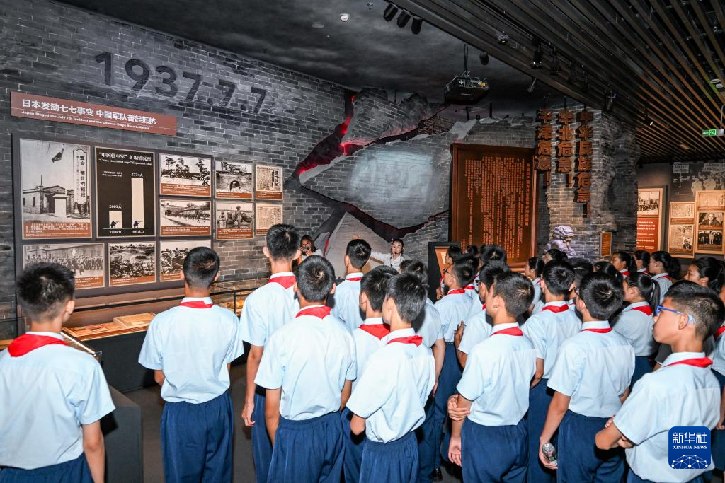 7月7日,北京市第十二中學的少先隊員在中國人民抗日戰爭紀念館向抗戰英烈獻花。