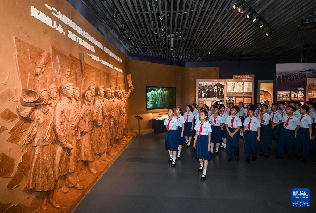 7月7日,北京市第十二中學的少先隊員參觀主題展覽。