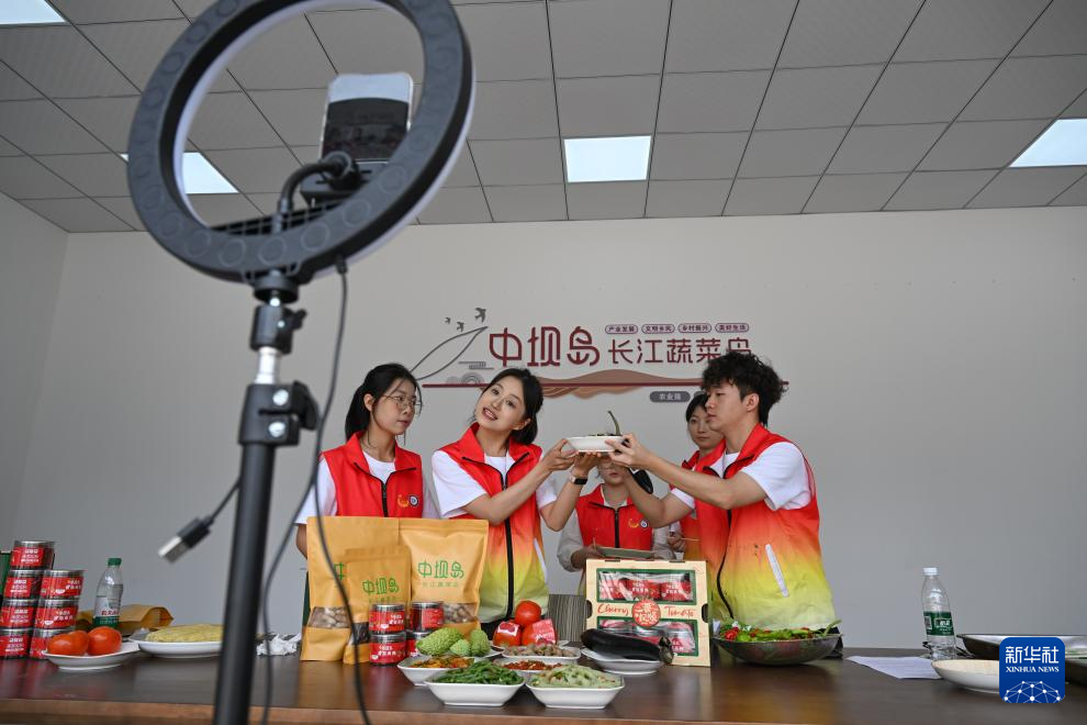 7月7日,志愿者在巴南區中壩島直播帶貨。