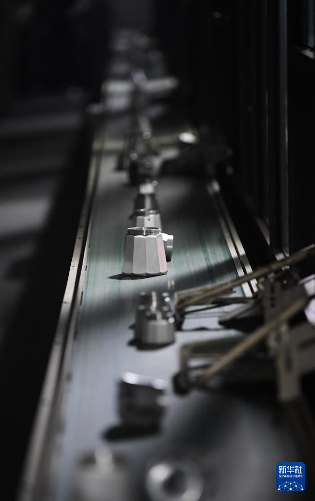 這是在浙江創建廚具有限公司拍攝的摩卡壺自動生產線(7月8日攝)。