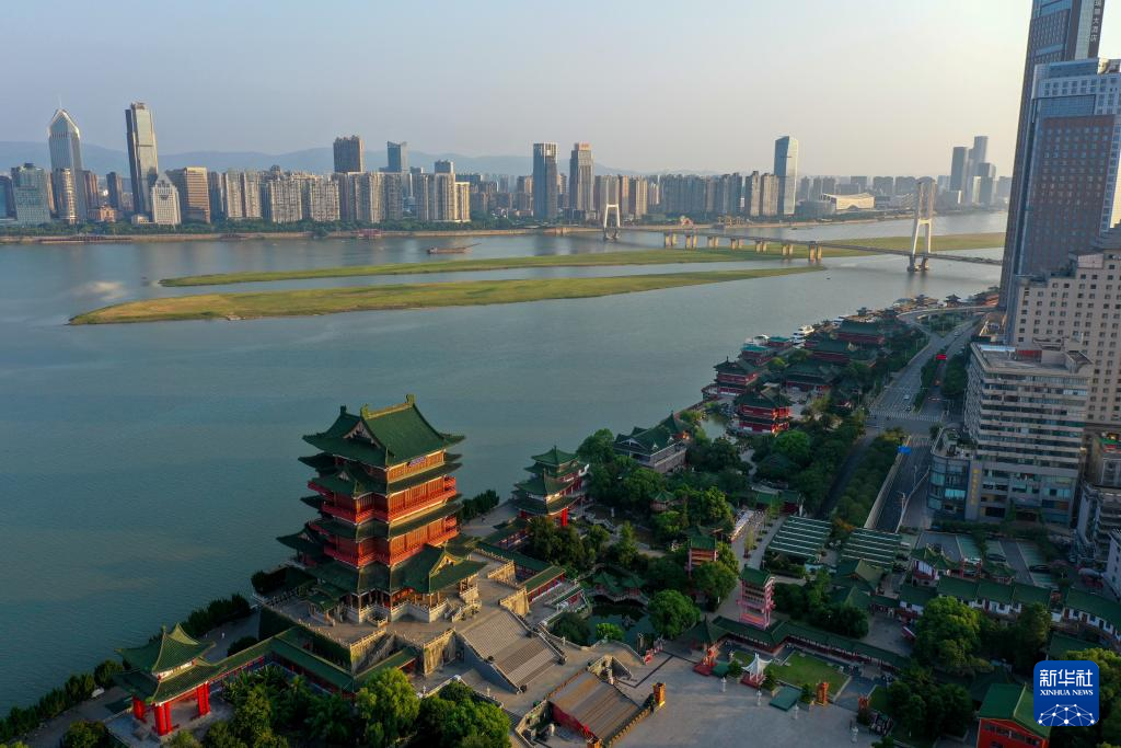 晨光中的江西南昌滕王閣景區(7月7日攝,無人機照片)。