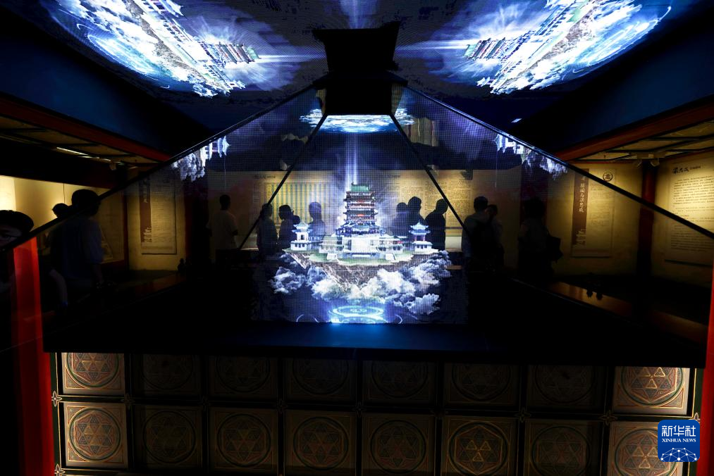 7月7日,游客參觀江西南昌滕王閣內的歷代滕王閣建筑景觀全息數字復原展示。