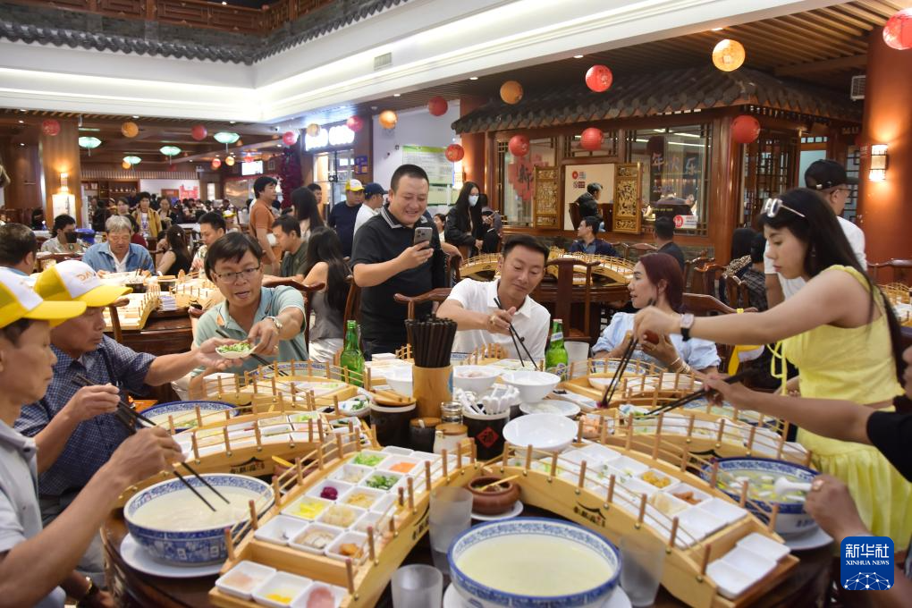 7月12日,來自越南的游客在云南省蒙自市一過橋米線店享用過橋米線。