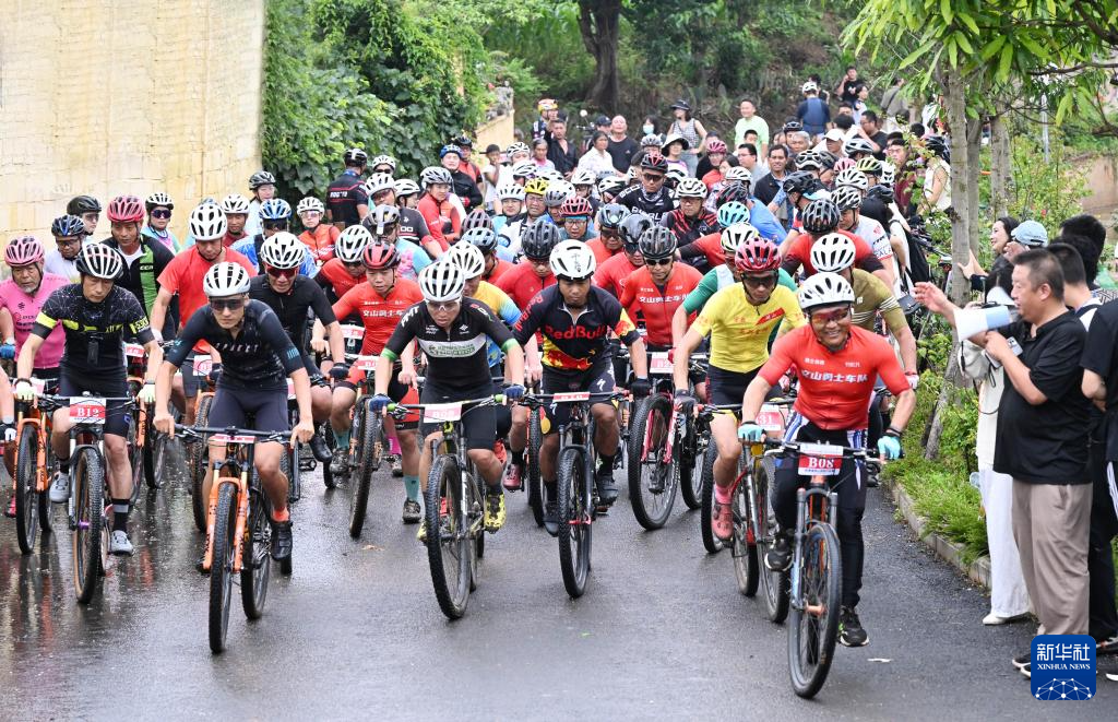 7月12日,在云南省文山壯族苗族自治州文山市新平街道莊子田居民小組,騎行愛好者參加騎行活動。
