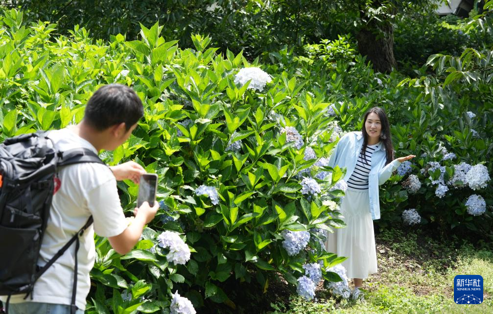 7月11日,游客在大理白族自治州漾濞彝族自治縣光明村賞花拍照。