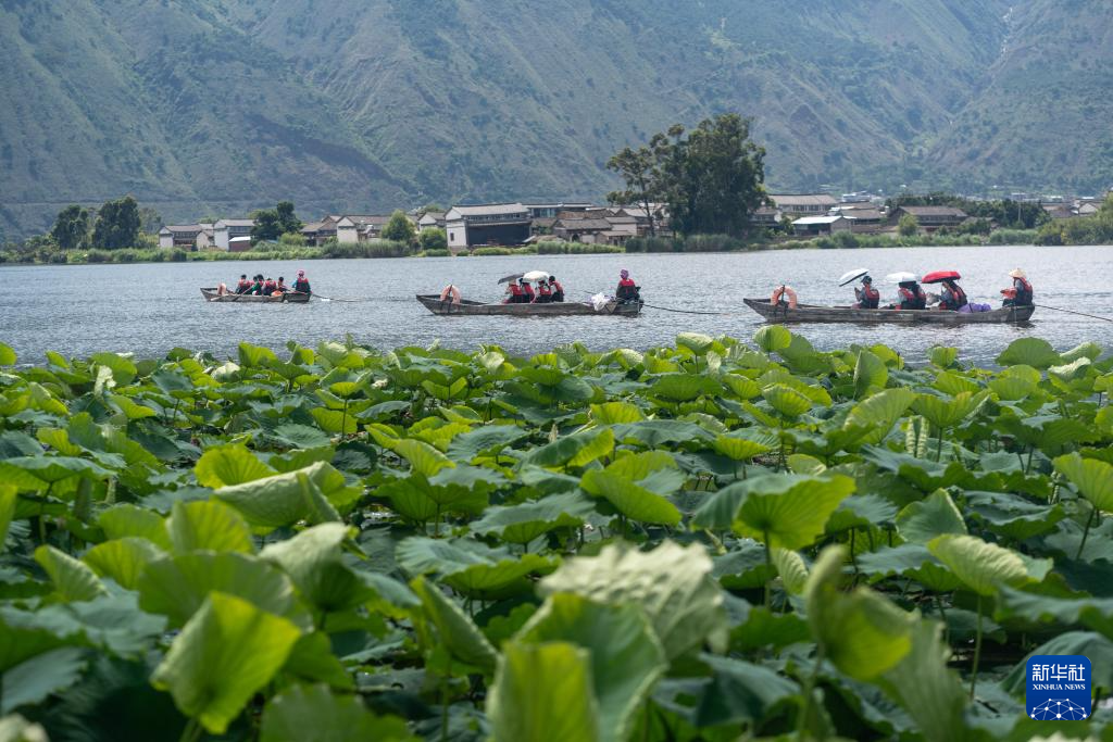 7月12日,游客在大理西湖劃船游覽。