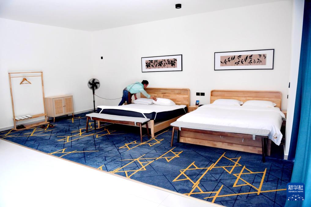 7月13日,工作人員在河北邢臺內丘縣侯家莊鄉一處民宿整理床鋪。