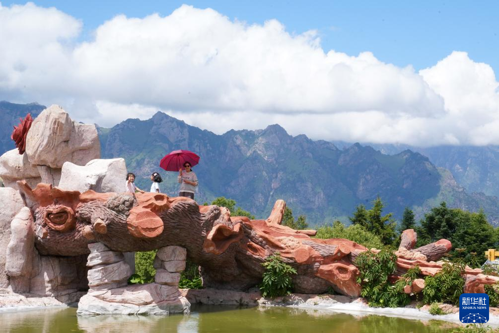 游客在舟曲拉尕山上游玩(7月12日攝)。