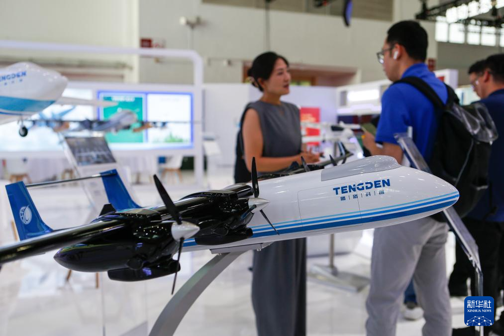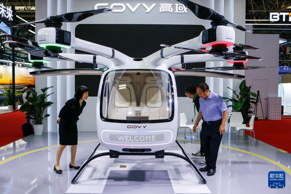 7月16日,參會者在智能汽車鏈展區高域展位了解一款低空飛行器。