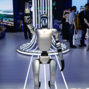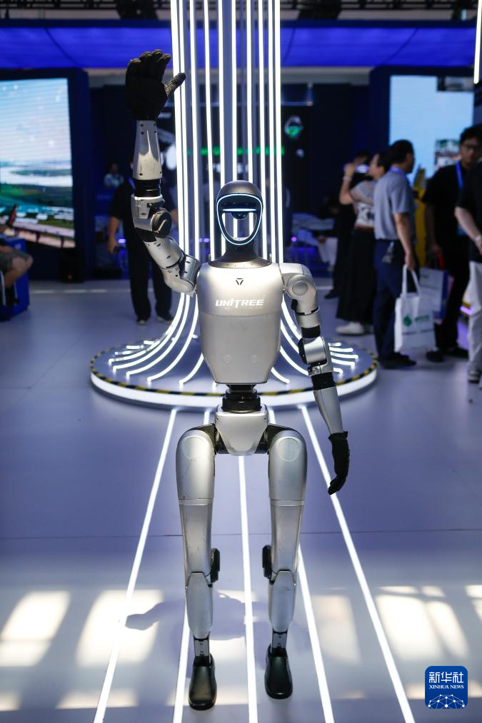 這是7月17日在數字科技鏈展區拍攝的宇樹機器人。