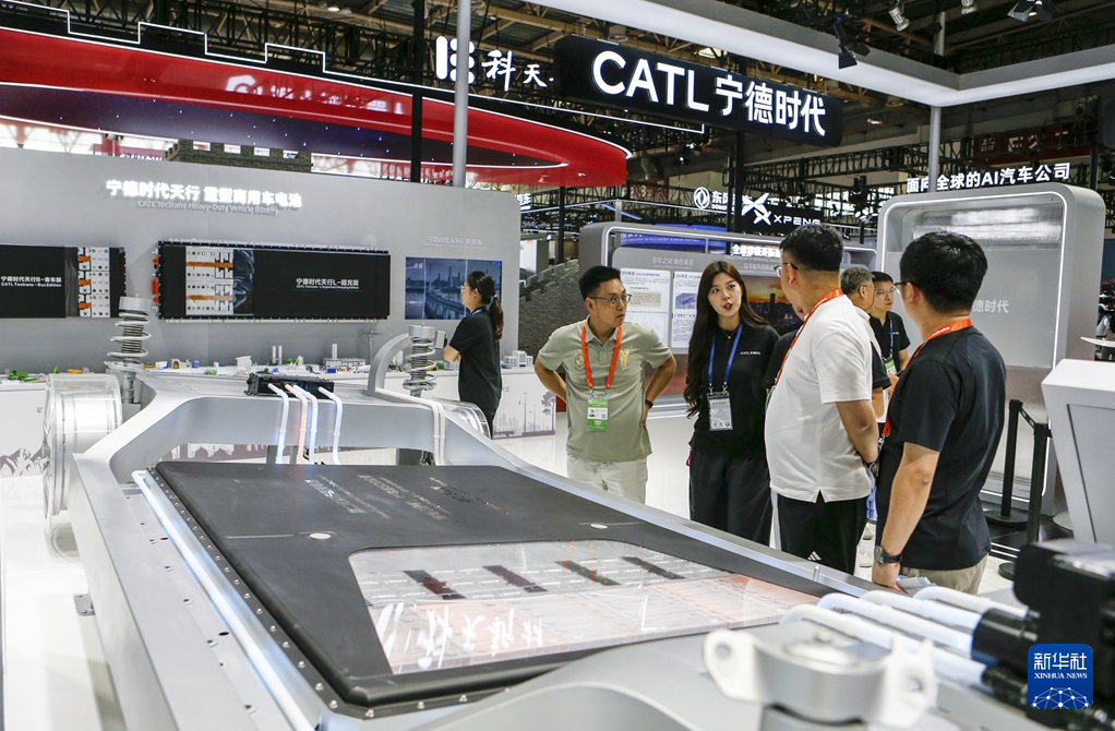 7月16日,參會者在智能汽車鏈展區了解寧德時代神行PLUS電池。