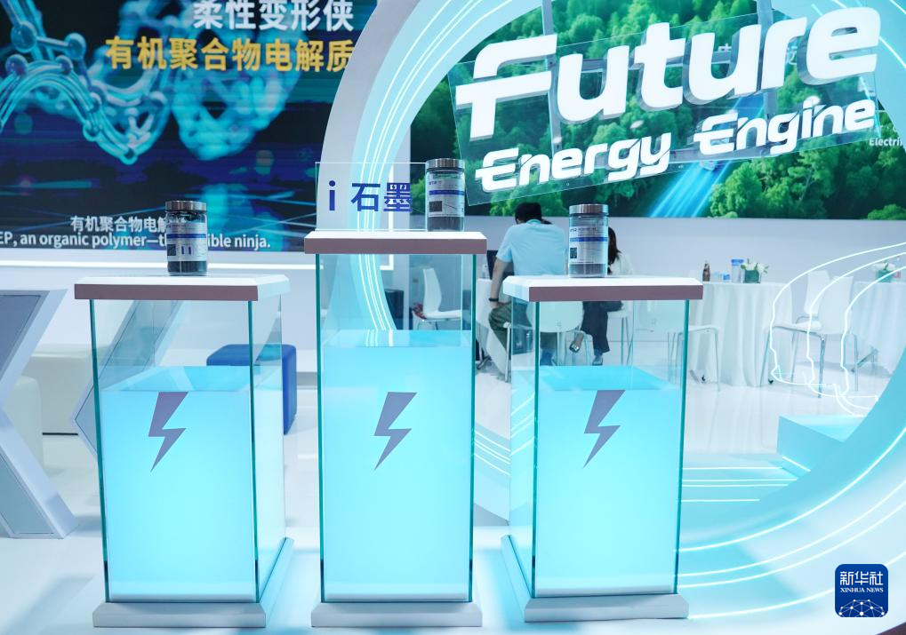 這是7月18日在智能汽車鏈展區貝特瑞展臺拍攝的展出的電池材料。