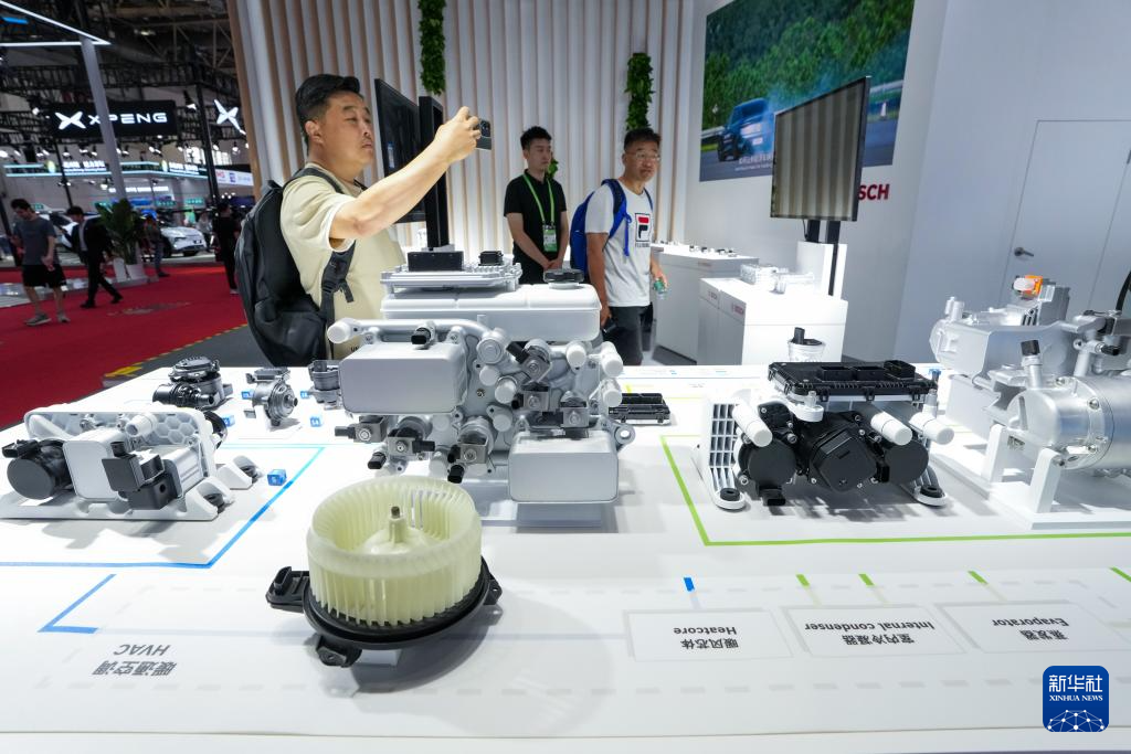 7月19日,在智能汽車鏈展區博世展臺,參觀者在拍攝面向新能源汽車的熱管理系統解決方案展示。