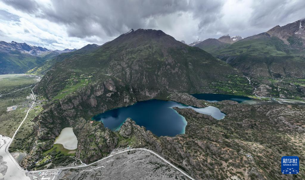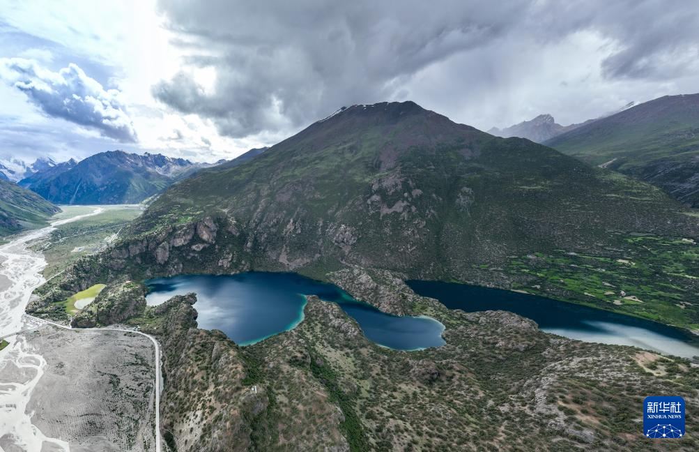 空中俯瞰“三色湖”,從左到右分別為黃湖、黑湖和白湖(7月20日攝,無人機照片)。