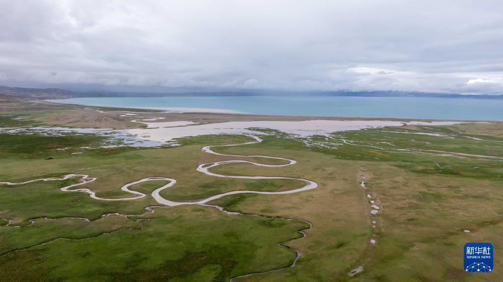 7月22日拍攝的瑪旁雍錯濕地一景(無人機照片)。