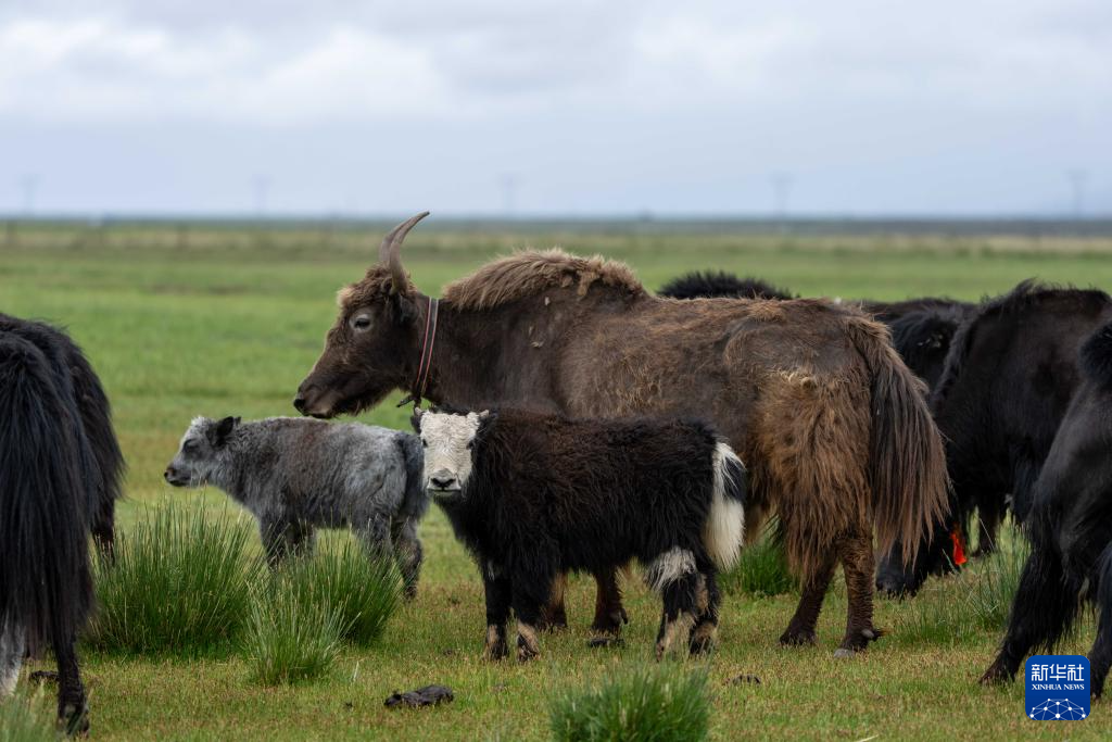 7月22日拍攝的瑪旁雍錯濕地上的牦牛。