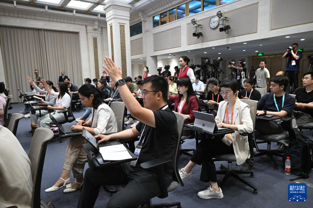 7月24日,國務院新聞辦公室在北京舉行“高質量完成‘十四五’規劃”系列主題新聞發布會。國家醫療保障局局長章軻介紹“十四五”時期深化醫保改革,服務經濟社會發展有關情況,并答記者問。這是記者在發布會上舉手。