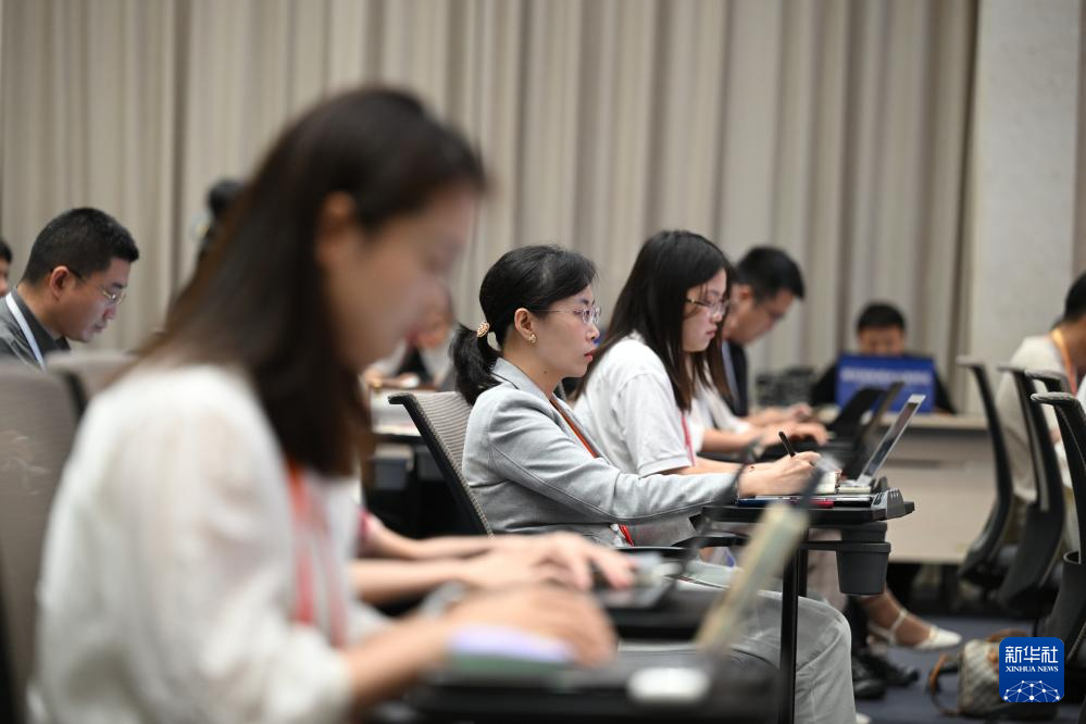 7月24日,國務院新聞辦公室在北京舉行“高質量完成‘十四五’規劃”系列主題新聞發布會。國家醫療保障局局長章軻介紹“十四五”時期深化醫保改革,服務經濟社會發展有關情況,并答記者問。這是記者在發布會現場工作。
