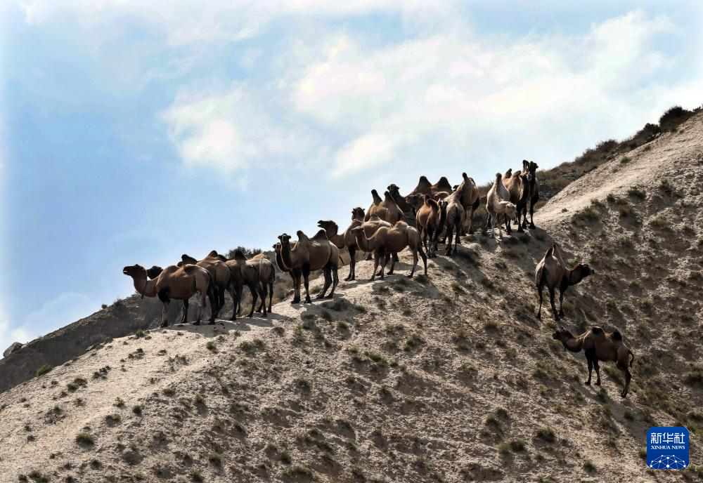 7月29日,一群駱駝在古爾圖南山景區悠閑吃草。