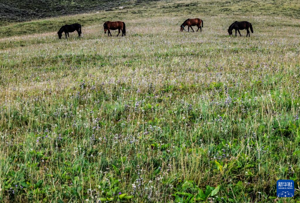 7月29日,馬在古爾圖南山景區悠閑吃草。