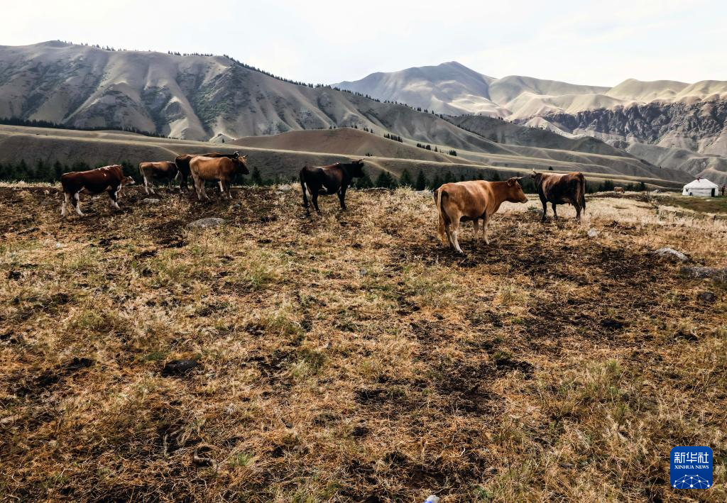7月29日,牛群在古爾圖南山景區悠閑吃草。