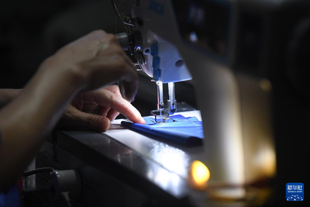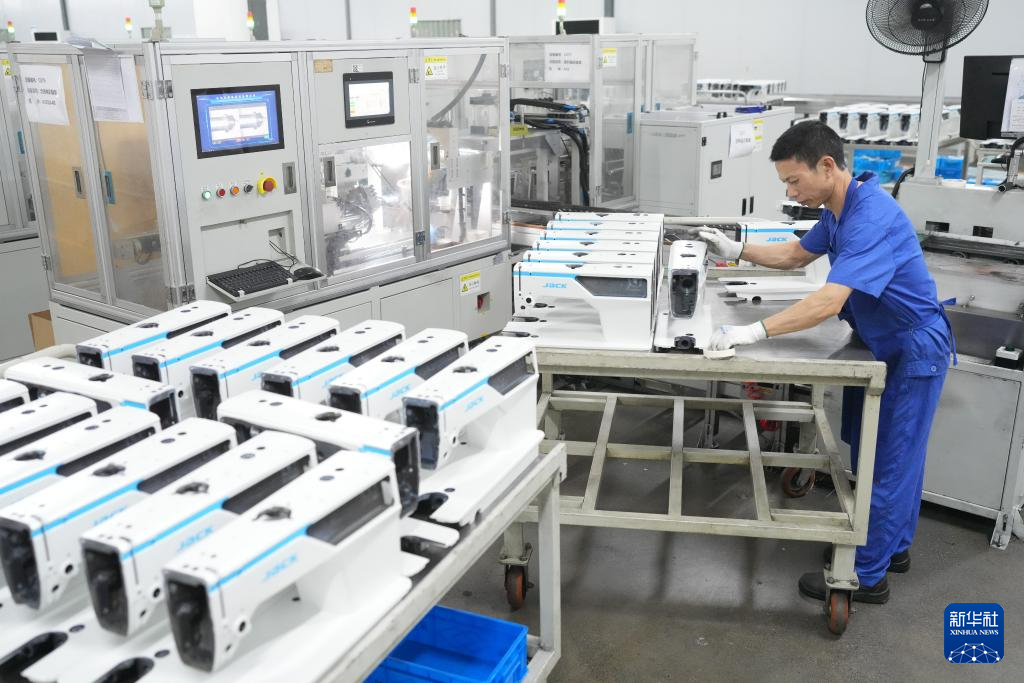 7月17日,在杰克科技股份有限公司臺州灣工廠,工人對智能縫紉機進行出廠前的性能測試。
